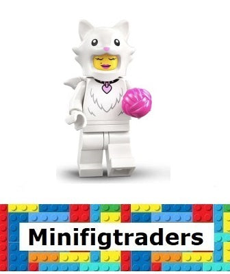 LEGO Minifigures 71051 Fluffy Cat Costume Fan, Series 28 (Complete Set with Stand and Accessories) col28-2 is one of 12 in the series, collect them all today.