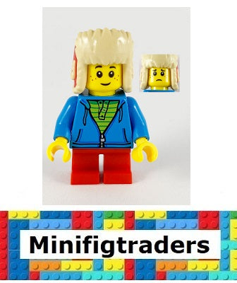80105 Child Boy, Red Ushanka Hat, Dark Azure Hoodie, Lime Shirt, Red Short Legs (hol194) contents have been removed from original packaging and placed into clear zip lock bags.
