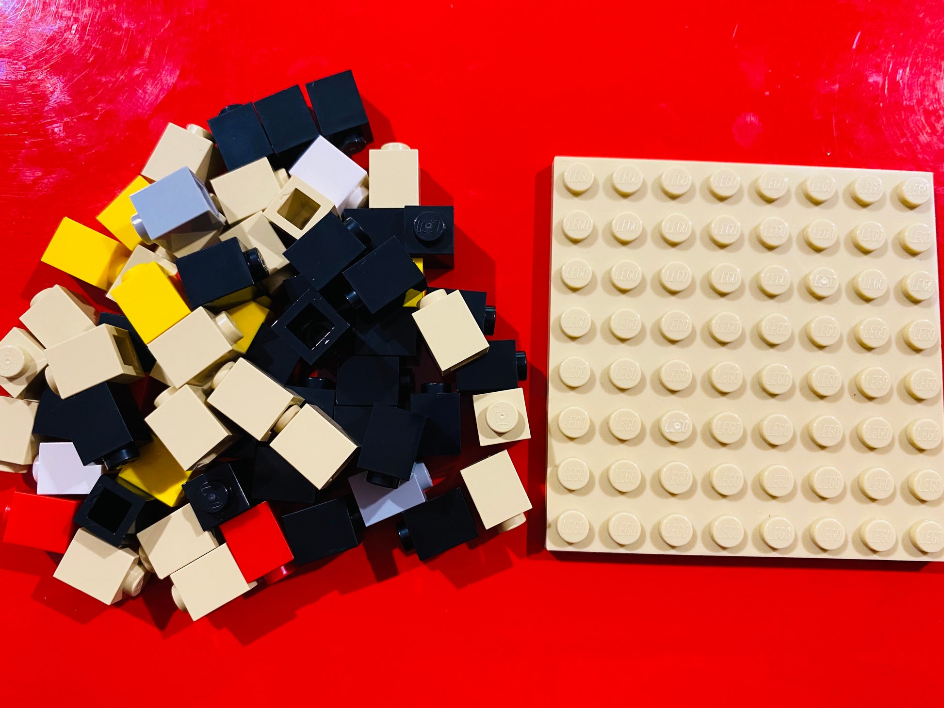 Each kit includes a tan coloured base plate, packet of 1x1 bricks of varying colours, Parent/teacher black envelope with solution inside (Not for builders eyes until after the build), 1 tool, 1 set of builder laminated instruction cards.