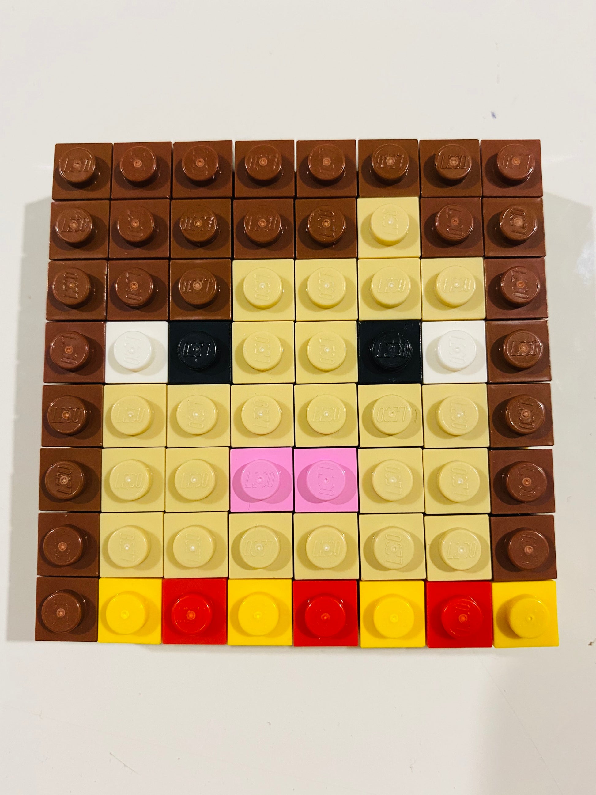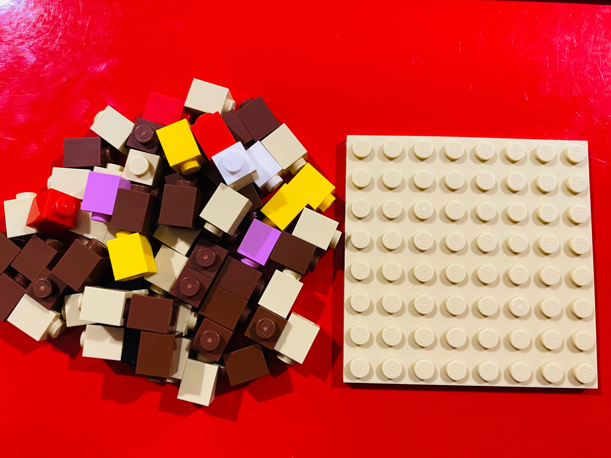Each kit includes a tan coloured base plate, packet of 1x1 bricks of varying colours, Parent/teacher black envelope with solution inside (Not for builders eyes until after the build), 1 tool, 1 set of builder laminated instruction cards.