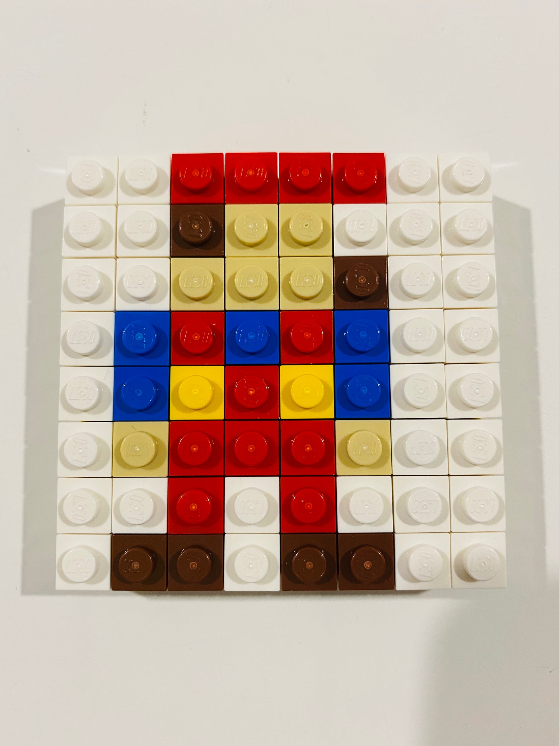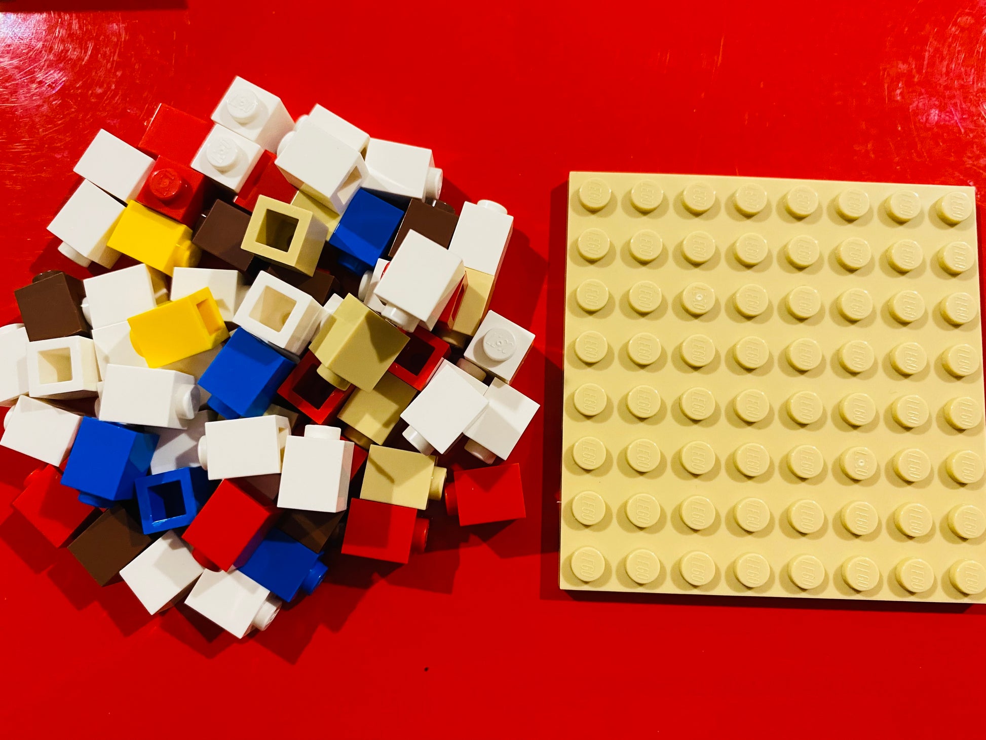 Each kit includes a tan coloured base plate, packet of 1x1 bricks of varying colours, Parent/teacher black envelope with solution inside (Not for builders eyes until after the build), 1 tool, 1 set of builder laminated instruction cards.